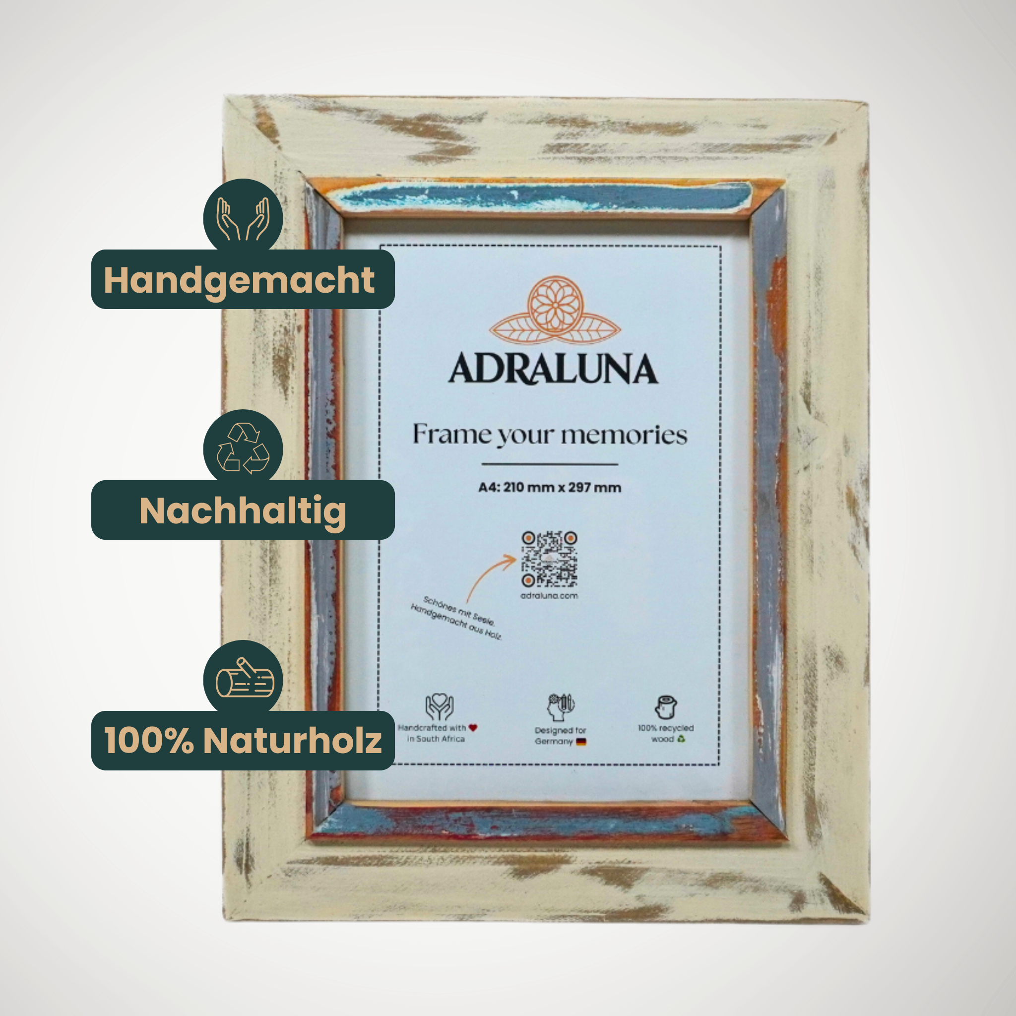 Alle unsere Used-Look-Rahmen bestehen zu 100% aus recyceltem Holz und sind somit umweltfreundlich. AdraLuna legt großen Wert auf höchste Qualität und Umweltfreundlichkeit!